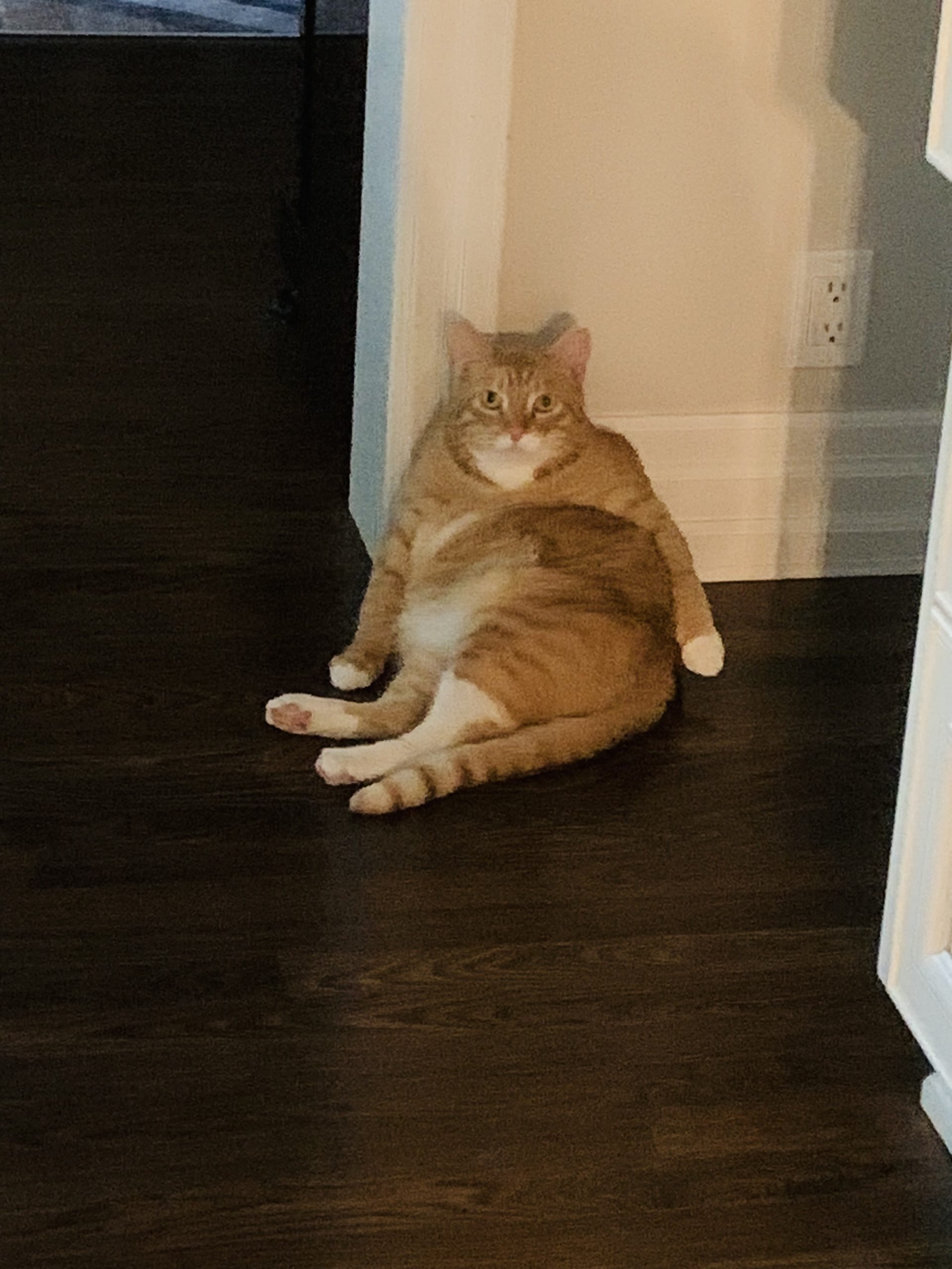 On the right is a photo of her adorable, fat orange tabby cat.