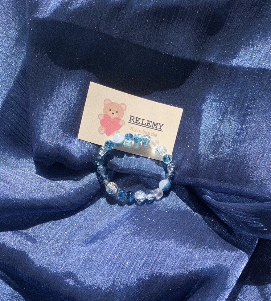 The larger beaded bracelets are made of glass, plastic, and transparent elastic. The colors are divided into two categories: adjacent colors and mixed colors. Similarly, the styles are usually divided into two categories: adjustable and non-adjustable. The pattern of each bead is different, and the design concept of each bracelet is also unique; sometimes it is the color combination of the clouds in the sky, or more abstractly, it is the feeling brought by the evening breeze. Overall, we hope that our products are not just for donations, but can convey positive beliefs and ideas.